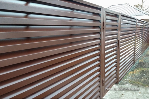 Забор Жалюзи — это секционное ограждение с необычным дизайном. Элементы выполнены из оцинкованной стали с полимерным покрытием.