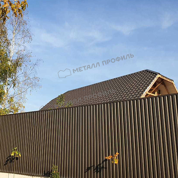 Профиль С-8: С-8 – самый низкий и весьма недорогой профиль. Его способность противостоять значительным нагрузкам относительно невелика, поэтому данный профнастил не применяется в конструкциях, где необходима повышенная жёсткость. Как правило, его применяют для облицовки фасадов, а также для возведения заборов и подвесных потолков. Обладая наиболее низким профилем – всего 8 мм – он вместе с тем имеет самую большую полезную ширину – 1150 мм. Как правило, на изготовление С-8 берётся стальной лист толщиной от 0,4 до 0,7 мм. Это подходящие параметры для облицовки фасадов или установки ограждений в климатических зонах с отсутствием порывистых ветров. Для вспомогательных конструкций (сараев, туалетов, бытовок, времянок) можно купить оцинкованный профнастил толщиной 0,35 мм, чтобы не переплачивать без необходимости.
