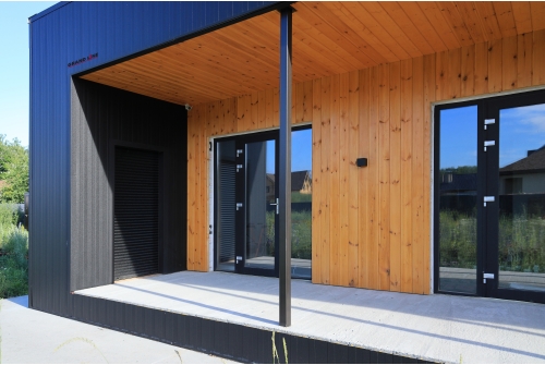 - Универсальность использования: может использоваться в качестве софитов для подшивки карнизных и фронтонных свесов, цокольного сайдинга и классического использования на фасаде. Оригинальность достигается за счет вертикального крепления панелей. Сочетание сайдинга Вертикаль с горизонтальным сайдингом может стать интересным дизайнерским решением. Надежное скрытое сцепление панелей придает фасаду здания естественный вид.